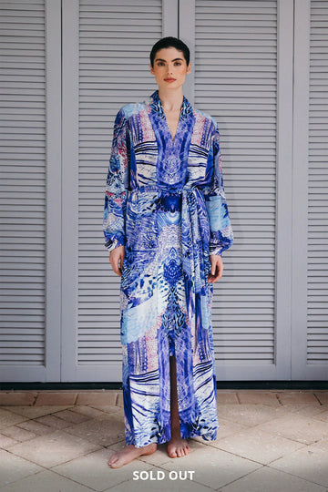Designed to bring out the feminine essence, this long sleeve convertible caftan dress is defined by its vibrant print and will elevate your summer edits with an ebullient allure.