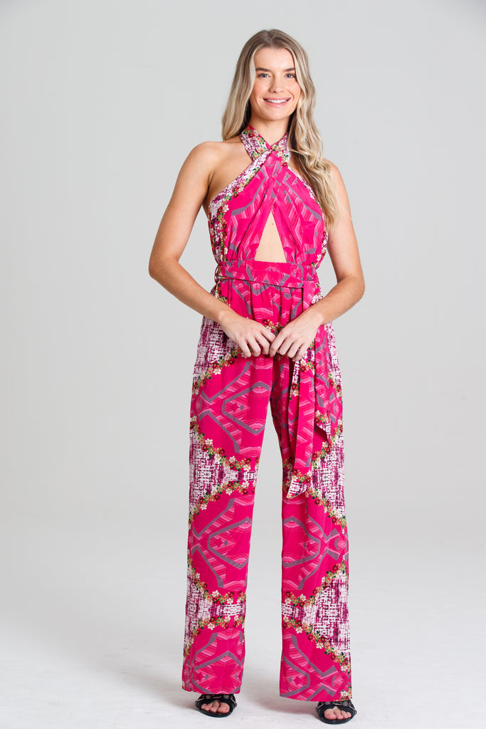This playsuit, is crafted in a flowy, feminine silhouette with a self-tie waist and halter to captivate. Imbuing your wardrobe with show- stopping prints, this piece will instantly enliven your ensembles with a refined touch.